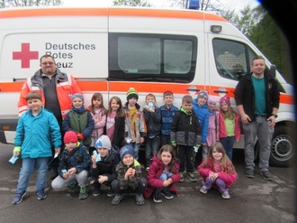 Zum Abschluss wurden noch das Martinshorn und das Blaulicht des Rettungswagens kurz in Betrieb genommen und jedes Kind bekam noch ein kleines Geschenk.