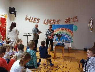 Neben der expandierenden KITA-Tätigkeit der Gemeinde gibt es wie bekannt sein sollte mit der KITA Mariae Heimsuchung auch eine KITA unter kirchlicher Trägerschaft in Wadgassen. Kurz vor dem 50. Jubiläum ihrer Gründung im Jahre 1973 wurde die langjährige Leiterin der KITA, Frau Angelika Hamm, vor Weihnachten nach weit über 40 Dienstjahren - davon seit 2012 in Leitungsfunktion - in den Ruhestand verabschiedet. In meiner Abwesenheit hat der Erste Beigeordnete Jürgen Fäh die Grüße der Gemeinde ausgerichtet und dabei vor allem auch ihre Arbeit in Zeiten großer Veränderungen, aber auch die gutnachbarlichen Beziehungen zu den KITA-Einrichtungen der Gemeinde betont.