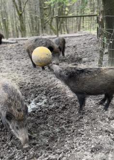 So werden die Wildschweine nicht nur herausgefordert, sondern bekommen auch einen kleinen Snack für zwischendurch. Unsere Wildschweine sind total begeistert von diesem neuen Spielzeug mit Belohnungseffekt und haben täglich viel Spaß damit.