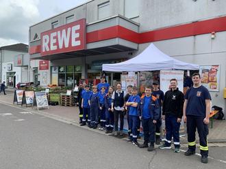 Pünktlich zum Inklusionstag, bauten wir um 11:00 Uhr unseren Würstchenstand vor dem REWE in Wadgassen auf.