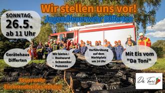 | 14.00 Uhr: | Vorführung der Jugendfeuerwehr Differten und Friedrichweiler auf dem Marktplatz Differten - „Praktische Einsatzübung“ |