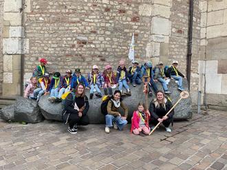 In Trier angekommen, marschierten wir Richtung Dom. Im Kulturzelt (vor dem Dom) mussten wir uns nach der langen und aufregenden Busfahrt erst einmal stärken, frühstückten ausgiebig und lauschten dabei Eddi Zauberfinger auf seiner Suche nach Jesus.