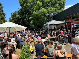 Viel Publikum und Beifall bei den Darbietungen der Kinder beim Kindergartenfest Mariae Heimsuchung am 4. Juni 2023