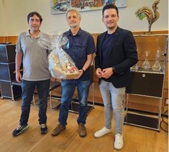 Regionale Produkte zum Abschied für Michael Grittman mit Thorsten Heinrich vom gemeindlichen Umweltamt