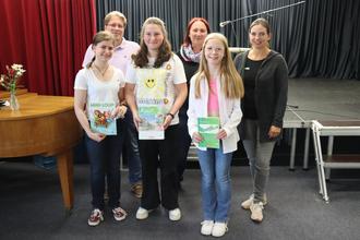 Die beiden zweitplatzierten Lea und Lenia freuen sich über einen Gutschein für das Schulbistro in Höhe von 5 €. Die Gewinnerin Fabienne erhielt neben dem Gutschein auch einen französischen Comic und wird das Warndt-Gymnasium am 30. Juni beim Landesentscheid vertreten.
