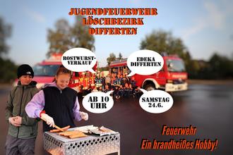 Am Samstag, den 24.06.2023, ab 10 Uhr findet der Rostwurstverkauf unserer Jugendfeuerwehr vor dem EDEKA Markt in Differten statt.