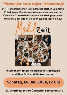 | ÜB | 12.00 Uhr | MAHL-Zeit, der etwas andere Gottesdienst mit Mittagessen, Ira Köhler |