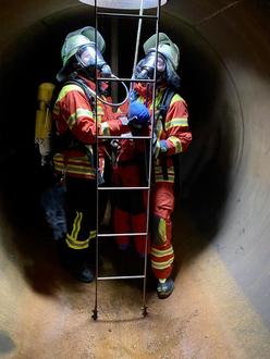 Station 1 - ABC: Eine Person ist in den Tankwagen einer Güterlok gefallen, die vorher geladene Flüssigkeit galt als unbekannt.