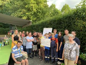 Als alle Programmpunkte beendet waren, durften wir freudig einen Scheck über 250,00€, für einen Sichtschutz an der Terrasse, überreichen.