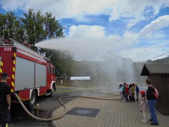 Nach einer kleinen Pause mit einer Brezel und einem erfrischenden Getränk konnte es für die Ranzenclubkinder weitergehen. Im zweiten eher theoretischen Teil, ging es um die Gefahr von Feuer und wie man sich im Notfall verhalten sollte. In einer Probesituation durften die Kinder ein Telefonat mit der „Differter Einsatzzentrale“ führen und das erlernte gleich anwenden. Das Highlight des Tages kam dann zum Schluss. Jedes Kind durfte mit dem Wasserschlauch Wasser spritzen und im Anschluss die Wasserkanone auf dem Feuerwehrauto bestaunen. Ein großes Dankeschön für den schönen Tag, geht an die Kameraden der Freiwilligen Feuerwehr Differten.