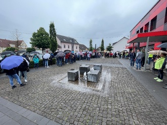 Bildunterschrift: Demonstration vor der Gemeinderatssitzung