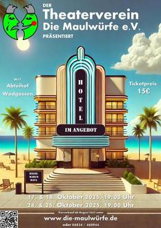Der Theaterverein "Die Maulwürfe" entführt Sie in diesem Jahr in den Sunshine State Florida. Schließen Sie die Augen und spüren Sie den warmen Sandstrand unter Ihren Füßen, hören Sie die Palmen im Wind wehen, schmecken Sie die Meerluft auf Ihren Lippen und sehen Sie ein kleines Hotel direkt am Strand, das zum Kauf angeboten wird.