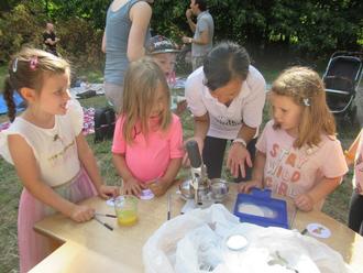 Bei der Wanderung gab es immer wieder Stopps bei denen wir Spiele machten und kleine Aufgaben erfüllen mussten. Zurück in der Kita, erwartete uns ein Fingerfood-Buffet das uns ein gemütliches Beisammensein ermöglichte. Auf die Kinder wartete noch eine Überraschung. Eine Button-Zaubermaschine, die mit dem Spruch: „Ene meine mei, Button komm herbei. Hex hex“, von den Kindern selbstgestaltete Button zauberte.