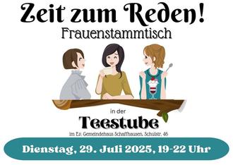 | Frauenstammtisch in der Teestube | – Jeden letzten Dienstag im Monat von 19:00 – 22:00 Uhr. Nächster Termin, Dienstag, 29. Juli 2025. |