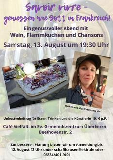 | Sonntag, 21.08.22, 10 Uhr m. Kirchenkaffee | Schaffhausen | Juliane Opiolla |