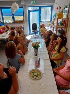 Mia M.: Ich fand es nicht so schön, dass ich am Sommerfest zweimal von einer Wespe gestochen wurde.
