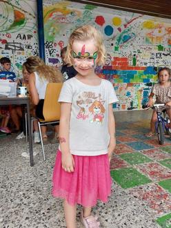 Neben Angeboten wie Legobauwettbewerb, Traumfänger basteln, Beautyday (siehe Foto) Wasserschlacht, Bodypainting (siehe Foto)… waren unsere Highlights der Ausflug in den Eifelpark, der Vorlesewettbewerb und das große Sommerfest. Dieses fand am 05.08.2022 statt und an diesem Tag präsentierten die Tänzer, die am Hip Hop Projekt mit Mike Kuhnen teilgenommen haben Ihren Tanz. Die Kinder die bei Herr Opps am Amerika Projekt teilgenommen haben, führten dem Publikum zwei Lieder auf Englisch vor. Das Sommerfest (siehe Foto) war sehr gut besucht und viele Eltern haben geholfen, dass es zu einem gelungenen Fest wurde. Natürlich auch die Hüpfburg (siehe Foto), die wir für diesen Tag organisiert hatten.