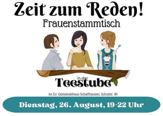| Frauenstammtisch in der Teestube | – Jeden letzten Dienstag im Monat von 19:00 – 22:00 Uhr. Nächster Termin, Dienstag, 26. August 2025. |