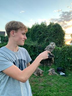 Zurück im Zeltlager gab es dann auch schon direkt die nächste Attraktion: Einen Besuch von Greifvögeln. Die Falkner Anja und Mario brachten ein paar ihrer Vögel mit und erklärten uns etwas dazu. Im Anschluss durfte jeder noch ein Foto machen!