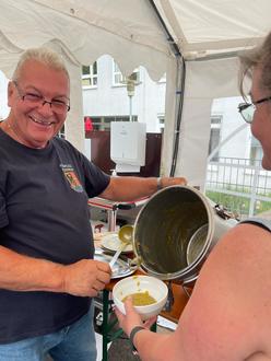 Am Sonntag ging es dann um 11:30 Uhr mit dem ökumenischen Gottesdienst weiter. Hier geht nochmals der Dank an Pastor Peter Leick und Pfarrerin Ira Köhler sowie dem Orchesterverein Wadgassen. Im Anschluss wurde unser neues Rettungsboot gesegnet und eingeweiht. Dann ging es auch schon mit dem Mittagessen, Erbsensuppe und Spießbraten los. Wir waren sehr erstaunt wie schnell das Essen leer war!
