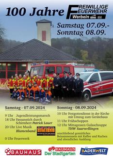 Vom 7.09 bis zum 8.09 feiern wir gemeinsam mit Euch 100 Jahre Feuerwehr Werbeln.