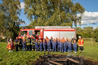 Gruppenbild unserer Jugendfeuerwehr, Betreuer und Jugendwarte an der 24 Std Übung