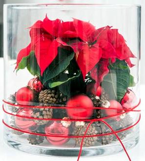 Wäre noch der Punkt mit dem Reifegas „Ethylen“ zu benennen. Es lässt die Weihnachtssterne vorzeitig altern. Sie kennen das sicher von Äpfeln, die es ebenfalls abgeben. Daher sollte man diese z. B. nicht mit Bananen zusammen in eine Obstschale legen. In der Vorweihnachtszeit werden Weihnachtssterne aber in großen Mengen dicht gedrängt und meist auch noch in Folie verpackt im Pflanzenhandel angeboten. Dabei entsteht ein „Überangebot“ an Ethylen, das sich nicht ausreichend verflüchtigen kann. Und so sorgt es bereits nach wenigen Stunden der Anreicherung für eine vorzeitige Alterung. Nehmen Sie Ihre Poinsettie zu Hause also gleich aus der Verpackung und vermeiden Sie unbedingt Dekorationen, bei denen das Gas nicht gut entweichen kann, wie zum Beispiel die Ausstellung der Pflanze in einem hohen Glasgefäß.