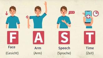 Um einen Schlaganfall erkennen zu können, führen Sie den FAST-Test durch: