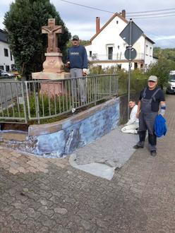 Am Samstag, 08.10.2022 um 10:00 Uhr trafen sich Armin Thiel, Manfred Schneider und Norman Link, um die Arbeiten am Dorfkreuz in Werbeln fortzuführen. Es wurde gespachtelt, gesäubert und die zu verputzenden Teile mit einer Grundierung versehen. Als nächster Abschnitt kann dann der Putz aufgetragen werden. Es ist mit einer Fertigstellung noch in diesem Jahr zu rechnen. Ich werde dann an gleicher Stelle über den Abschluss des Projektes berichten.