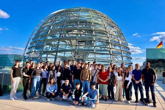 Wenige Tage nach den Sommerferien machten sich die Schülerinnen und Schüler der Klassenstufe 12 des Albert-Einstein-Gymnasiums mit ihren Lehrern auf den Weg nach Berlin. Ziel war es, Deutschlands Hauptstadt in fünf Tagen sowohl historisch als auch politisch zu erleben. Die SchülerInnen nahmen an einer historischen Stadtführung teil und besichtigten Wahrzeichen wie das Brandenburger Tor, den Alexanderplatz und das Reichstagsgebäude. Von letzterem aus genossen die Lernenden nicht nur den Ausblick über Berlin, sondern kamen auch ins Gespräch mit einem Mitarbeiter der Abgeordneten Emily Vontz. Auf ihrer geschichtlichen Entdeckungstour bot sich den Schülern die Gelegenheit in direkten Austausch mit Zeitzeugen zu kommen. So wurden sie von zwei ehemaligen, unschuldigen Insassen des Stasi-Gefängnisses in Hohenschönhausen durch ebendieses geführt. Um einen weiteren Eindruck von Berlin im Zeitraum der DDR zu erhalten, folgten die Lernenden dem Verlauf der ehemaligen Berliner Mauer und nahmen den Checkpoint Charlie genauer unter die Lupe. Die Schüler beschäftigten sich auch mit Berlin in Zeiten des 2. Weltkrieges. So besichtigten sie die Ausstellung „Berlin 1933-1945 – Zwischen Propaganda und Terror“ und das jüdische Museum. Zum Schluss ließen es sich die Schüler nicht nehmen, auch der Humboldt-Universität zu Berlin einen kurzen Besuch abzustatten und somit einmal die Universität zu sehen, in der Albert Einstein einige Jahre lang forschte und Vorlesungen hielt. Wieder zurück im Saarland heißt es nun wieder ‚Gas geben‘, denn das Abitur steht bevor und danach könnten die Schüler bald auf längere Zeit in einem Vorlesungssaal Platz nehmen – vielleicht sogar in Berlin.