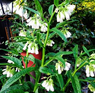 Die Blütenfärbung ist meist violett, kann aber auch weiß bis gelblich und sogar tiefblau sein. Unsere Vorfahren bezeichneten die Pflanzen mit den rot-violetten Blüten als Beinwellmännlein, die mit den gelblich-weißen Blüten als Beinwellweiblein. Die Blütezeit des Beinwells ist recht lange. Sie beginnt in aller Regel bereits im Mai und endet -bei milder Witterung- im November. Sie ist eine wahre Bienen- und Insektenweide, und das sogar noch im Spätherbst, wenn das Nahrungsangebot für unsere Insektenwelt recht spärlich wird.