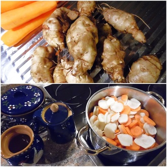 Auf der anderen Seite hat die Topinambur eine richtig große Fülle an Vitaminen, Mineralien und Spurenelementen, sowie Inulin. Bei Menschen mit Gewichtsproblemen oder Stoffwechselstörungen kann die Aufnahme von Topinambur in ihren Speiseplan zu einer Linderung der Beschwerden beitragen. Und noch etwas ist sehr wichtig – vor allem für Diabetiker: Denn im Gegensatz zur Kartoffel enthält die Knolle der Topinambur keine Stärke, sondern besagtes Inulin. Das ist ein Mehrfachzucker, der Magen und Dünndarm unverdaut passiert. Im Dickdarm entfaltet der Stoff dann seine Wirkung und sorgt dort für eine gesunde Darmflora. Inulin hat laut der Ernährungswissenschaftler keinerlei Einfluss auf den Blutzucker, daher ist die Topinambur ideal für die Ernährung von Diabetikern. Einschränkend muss ich allerdings dazusagen, Inulin kann auch einen unangenehmen Nebeneffekt haben, denn es kann bei empfindlichen Menschen zu Blähungen führen. Dem kann man allerdings begegnen, wenn man anfangs mit kleinen Portionen von Topinambur beginnt und sich dann langsam an etwas größere Mengen herantastet. Dieses Gemüse, das auch oftmals als Kartoffelersatz zum Einsatz kommt, schmeckt nicht nur gut, sondern ist auch sehr vielfältig einzusetzen. Man kann die Knolle als Salat zubereiten, kochen oder eine Suppe daraus zubereiten. In der Regel sind die Knollen nicht ganz so groß wie eine mittlere Kartoffel. Die Form ist jedoch mitunter ziemlich „verwachsen“. Mich erinnert sie dann an Ingwerknollen. Von daher ist sie nicht ganz so leicht zu schälen, und so macht es sich ganz wunderbar, dass ihre Zubereitung sowohl mit, als auch ohne Schale, gut möglich ist.