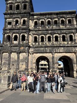 Am 02.10.2025 hieß es für die Klasse 7.3 der Gemeinschaftsschule in Überherrn: Heute ist der perfekte Tag, um nach Trier zu fahren. Mit dem Zug startete die Klasse, in Begleitung von Frau Geibel und Frau Grabowski-Kirst, in Saarlouis am Bahnhof und nach einer Stunde kurzweiliger Fahrt war Ankunft in der alten Römerstadt Trier. Sofort ging es in Richtung Amphitheater, wo nach kurzen Referaten genügend Zeit war, das fast 2000 Jahre alte Bauwerk mit ehemals ungefähr 18.000 Besucherplätzen im Sonnenlicht zu bestaunen. Anschließend standen die Kaiserthermen, die Basilika St. Barbara sowie die eindrucksvolle Porta Nigra auf dem römischen Sightseeing-Programm. Im GW-Unterricht hatte die Klasse Referate erarbeitet. Die Bauwerke nun selbst besuchen und bestaunen zu können, war etwas Besonderes, zumal sich die Stadt Trier im Herbstlicht von ihrer schönsten Seite zeigte… Zum Abschluss konnten die Schüler auch das moderne Trier mit den Geschäften erkunden. Gegen 16:30 Uhr war der Ausflug in die ehemalige Römerstadt zu Ende. So macht Schule Spaß - das fanden sowohl die Schülerinnen und Schüler als auch die Lehrerinnen.