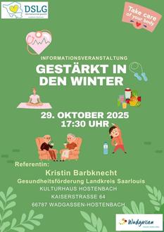 Ob Sie sich vor häufigen Erkältungen schützen, Ihre Energie im Winter erhalten oder einfach etwas Gutes für Ihre Gesundheit tun möchten – dieser Abend bietet Ihnen viele nützliche Impulse und leicht umsetzbare Anregungen für den Alltag.