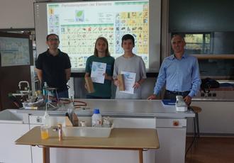 Auch zwei Schüler des Albert-Einstein-Gymnasiums, Julius Weber und Süheyl Yilmaz, beteiligten sich mit eigenen Computerspiel-Ideen. Ihre Konzepte zeigen anschaulich die Einsatzmöglichkeiten und Besonderheiten von Wasserstoff. Für ihr Engagement wurden beide mit einer Urkunde sowie einem Trostpreis ausgezeichnet und dürfen sich nun offiziell „Wasserstoff-Insider“ nennen.