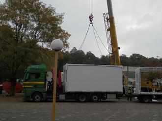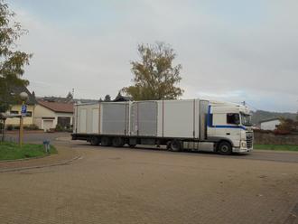 Heute Morgen haben wir in der Nähe unserer Kita ein Tieflader gesehen. Eigentlich ja nichts Besonderes. Doch er war mir zwei Containern beladen. Diese Tatsache ließ uns vermuten, dass es sich dabei um Teile unserer zukünftigen „Container-Kita“ handelt. Um das Rätsel lösen zu können, machten wir uns auf den Weg zur Biststalhalle.