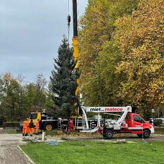 Der Weihnachtsbaum wird vor dem Abteihof gesetzt