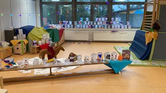 Ob Pompoms, Federn, bunte Aufkleber oder glitzernde Zaubersteine - den Kindern waren bei der Auswahl der Bastelmaterialien keine Grenzen gesetzt. Jedes Kind konnte seiner Fantasie freien Lauf lassen und seine ganz persönliche Laterne gestalten. Einige entschieden sich für das klassische Malen, während andere Schablonen auf Transparentpapier verwendeten, um einzigartige Muster und Formen zu erzeugen. Zu guter Letzt durfte durfte der Glitzer nicht fehlen!