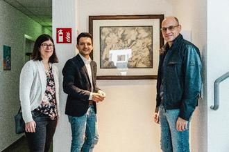 Frau Isabell Spindler (links) und Herr Björn Jakobs (rechts) bei der Einweihung des Gemäldes