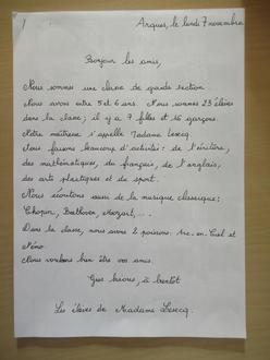 Frau Lesecq, eine Lehrerin der Schule Kergomard in Arques und ihre Schüler schickten uns damals einen Brief, in dem sie uns fragten: „Wollt ihr unsere Freunde sein?“.
