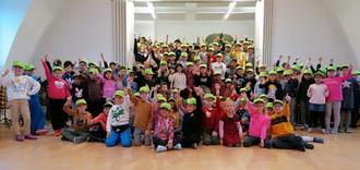 Wow! Beeindruckend. So still erleben manche Familien ihre Kinder sonst nur im Schlaf: bei der wöchentlichen Versammlung der Abteischule am Freitagmorgen kommen alle Kinder ruhig zusammen, um Themen zu besprechen, die alle in der Schule angehen. Doch diesmal war etwas anders - und obwohl noch nicht Weihnachten ist, gab es Geschenke: Der Förderverein hat für jedes Kind in der Abteischule leuchtend grüne Schirmmützen besorgt und individuell mit Logo und Namen bedrucken lassen. Da war es vorbei mit der Ruhe! Zuerst wurde gemeinsam mit dem „Wachmacher-Lied“ auch die letzte Schlafmütze flott gemacht, dann durfte jedes Kind nach vorne zur Bühne in der Aula kommen und sein Geschenk in Empfang nehmen. Eilig kam so nach und nach jede Mütze auf den richtigen Kopf und alle posierten für ein leuchtendes Foto. Herzlichen Dank an alle Mitglieder, Freunde und Förderer des Vereins - die Kinder haben sich riesig über ihr Erkennungszeichen gefreut und tragen die Mützen mit Stolz. Es hat Spaß gemacht, die strahlenden Augen zu sehen, die unter den giftgrünen Käppis hervorblitzten!