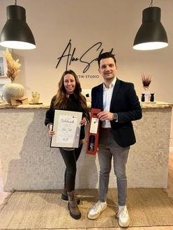 Übergabe Unternehmer Urkunde und Empfangsgeschenk zur Neueröffnung