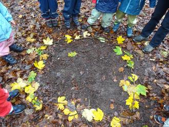 An der letzten großen Kreuzung hatten wir noch eine Aufgabe zu erfüllen. Nacheinander mussten wir unterschiedliche Waldschätze wie: gelbe und braune Blätter, Steine, Stöcke, Buchecker und Eicheln sammeln. Daraus sollten wir zwei Waldmandalas in Form eines Drei- und Vierecks legen. Diese sahen toll aus und somit hatten wir unsere Aufgabe mit Bravour gemeistert.