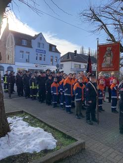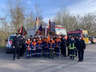 Zu diesem besonderen Anlass nahmen wir natürlich unser drei Standarten von den drei Ortsteilen Wadgassen, Hostenbach und Schaffhausen mit. Unterstützung erhielten wir von einer Abordnung der Jugendfeuerwehr. Auch diese packte ihr Standarte zu diesem Anlass aus.