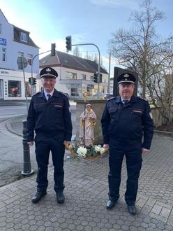Unser Wehrführer und sein Stellvertreter durften die neue Statur in die Kirche führen.