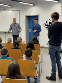 Schulleiter Frank Will erklärt den Kindern das Kinderparlament