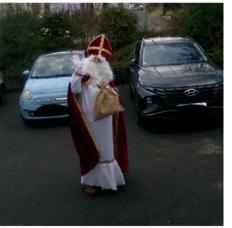 In der Krippe haben die beiden Partnergruppen zusammen gefeiert. Dort wurden Nikolauslieder gesungen und auch hier gab es einen Weckmann. Das Highlight an diesem Tag war der Nikolaus, der durch unseren Garten und um unsere Kita herum ging. Darüber freuten sich die Kinder sehr. Ebenfalls fand einmal in der Woche ein Adventssingen statt. Dazu trafen sich alle Kinder die singen wollten im Flur vor unserem Tannenbaum. Mit der Begleitung der Gitarre wurden weihnachtliche Lieder gesungen.