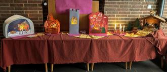 Unsere Vorweihnachtszeit begann mit St. Martin (Namenstag 11. November). In Vorbereitung wurden die Kinder zum ersten zum Kamishibai-Theater in die Turnhalle eingeladen, wo sie in Bildern und Erzählungen von der Lebensgeschichte der Heiligen erfuhren. Dabei wurde entdeckt, miterzählt und ein „Lebensweg“ gelegt und ausgestaltet.
