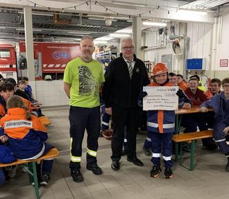 Bevor es jedoch an die Wahl ging, besuchte uns zunächst Christian Duchene, von Avalon Bestattungen Christian Duchene, um der Gemeindejugendfeuerwehr eine Spende zu überreichen.