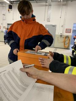 Nach der Spendenübergabe startete dann die Wahl. Jedes Mitglied der Jugendfeuerwehr durfte eine Stimme für einen der drei Kandidaten abgeben. Nach der geheimen Wahl und Stimmenauszählung hatten wir ein Ergebnis! Die Wahl fiel am Ende auf Maximilian Walter aus dem Löschbezirk Mitte!